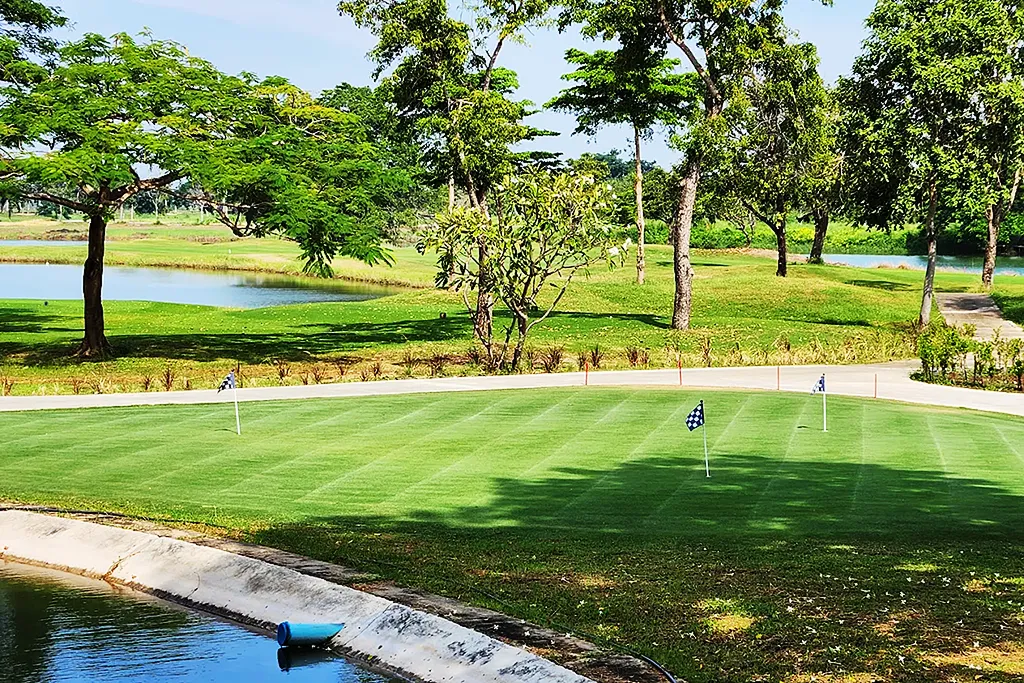 (ทรัพย์สินมีการจัดภูมิทัศน์ที่สมบูรณ์พร้อมแฟร์เวย์และคลับเฮาส์ ออกแบบมาเพื่อรองรับทั้งนักกอล์ฟในพื้นที่และนักท่องเที่ยวชาวต่างชาติท่ามกลางบรรยากาศธรรมชาติที่เงียบสงบ)
