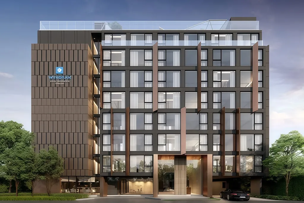 Asset class: Modern luxury 8-story building designed as a high-yield hospitality investment asset.