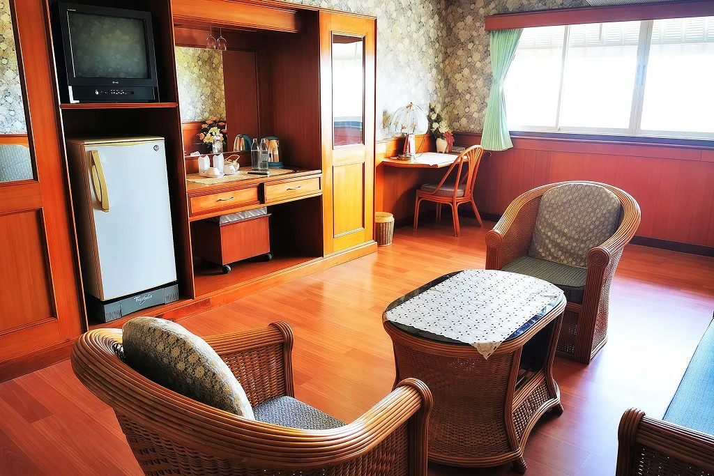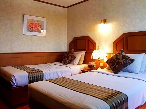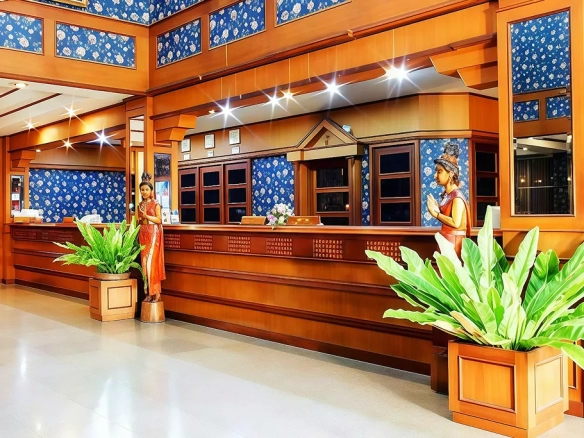 (เป็นโรงแรมรุ่นแรก ๆ ที่มีชื่อเสียงในจังหวัด เหมาะกับนักท่องเที่ยวและงานประชุมสัมมนา) - Main 4-storey building + 3 additional buildings (restaurant & meeting halls), 1–2 storey reinforced concrete with Thai-style wooden decoration.