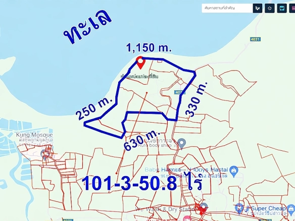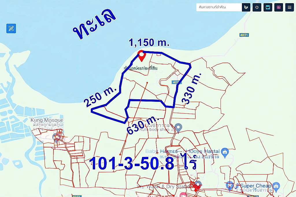 - An extraordinary 101.88-rai beachfront landscape located on Rural Road 4031 (an extension of Highway 4027), offering a rare combination of large scale and direct private beach access.