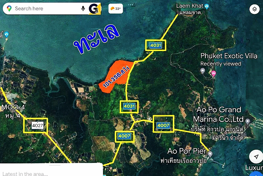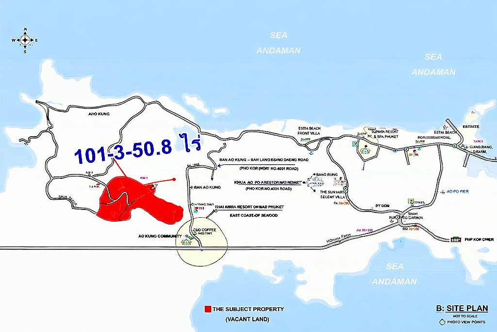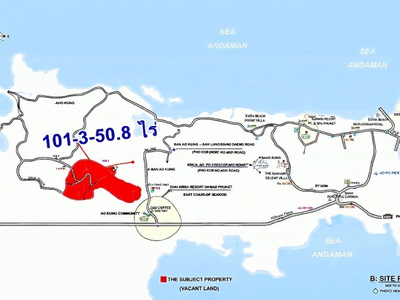 (ที่ดินริมทะเลผืนใหญ่ระดับพรีเมียมเนื้อที่กว่า 101.88 ไร่ ติดถนนหลวงชนบทสาย 4031 เชื่อมต่อถนนสาย 4027 มอบความเป็นส่วนตัวสูงพร้อมหน้ากว้างติดชายหาดโดยตรง) - Situated in the serene Ao Kung area on Phuket’s east coast, known for its “Ozone 7” fresh air, lush year-round greenery, and its status as a preserved nature and marine sanctuary.