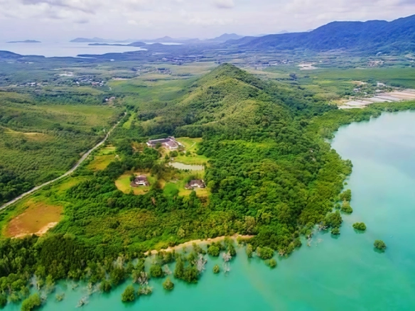 (ตั้งอยู่ในย่านอ่าวกุ้งทางทิศตะวันออกของเกาะภูเก็ต โดดเด่นด้วยอากาศบริสุทธิ์ “โอโซน 7” สภาพแวดล้อมเขียวชอุ่มตลอดทั้งปี และเป็นย่านอนุรักษ์ป่าและทะเลอันดามันที่เงียบสงบ) - The site is 100% developed and ready for immediate business transformation, featuring a natural slope towards the sea that prevents flooding and offers stunning panoramic ocean views.