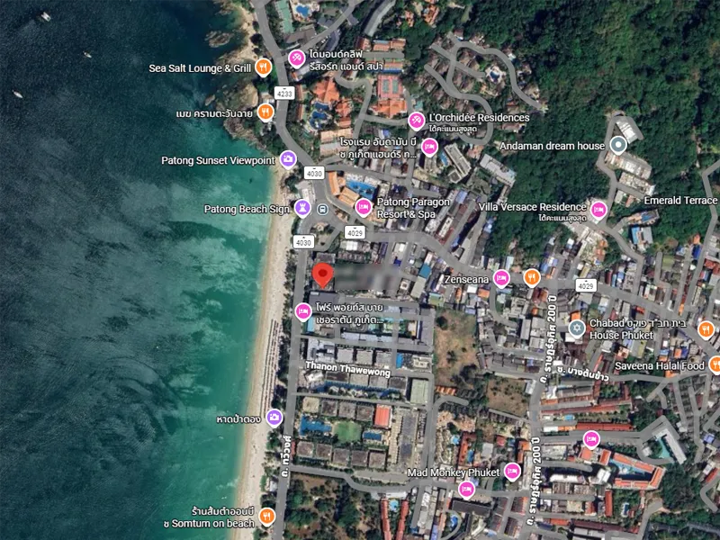 (ตำแหน่งสินทรัพย์: รีสอร์ทหรูระดับ 5 ดาวติดชายหาด โดดเด่นด้วยการออกแบบที่มีเอกลักษณ์ สิ่งอำนวยความสะดวกระดับไฮเอนด์ และตั้งอยู่ในทำเลศักยภาพทางทิศเหนือของหาดป่าตอง) - Strategic location: Situated on Thaweewong Road, Patong, providing direct access to the beach and offering a more tranquil atmosphere while remaining close to the city’s nightlife.