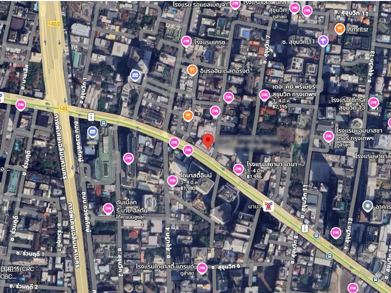(ทำเลที่ตั้ง: หน้ากว้างติดถนนหลักสุขุมวิท บริเวณปากซอยสุขุมวิท 5 ติดกับสถานีรถไฟฟ้า BTS นานา) - Accessibility: High-traffic location with direct access to the toll expressway and central business nodes.