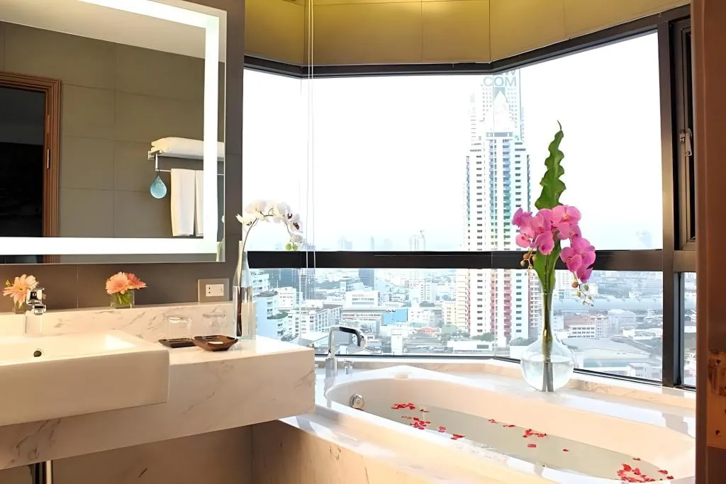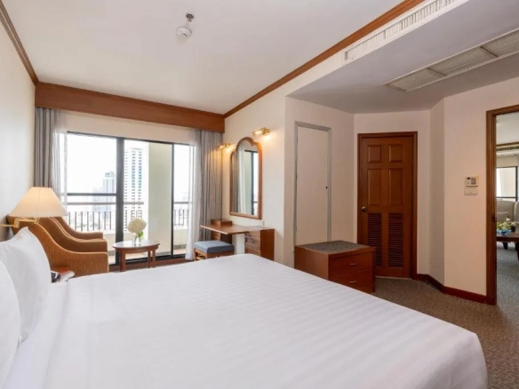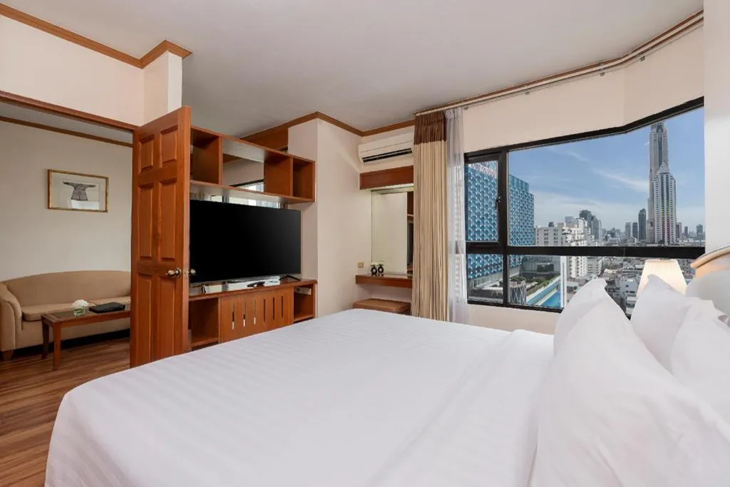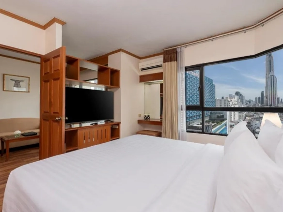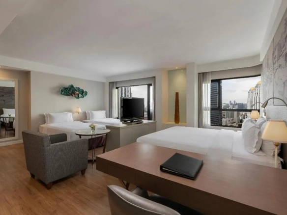 Rare all-suite hotel with integrated retail plaza in Bangkok CBD.