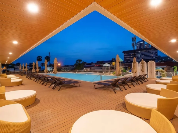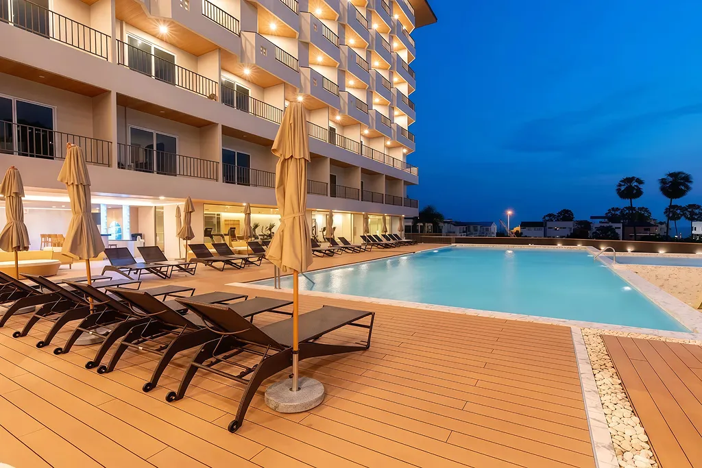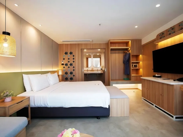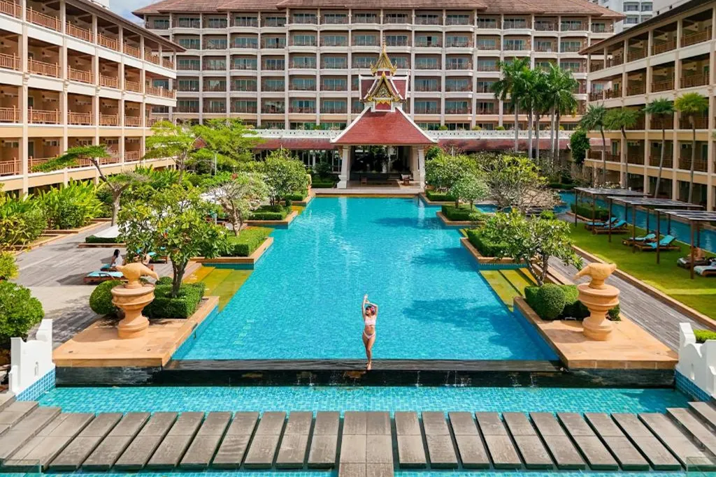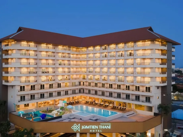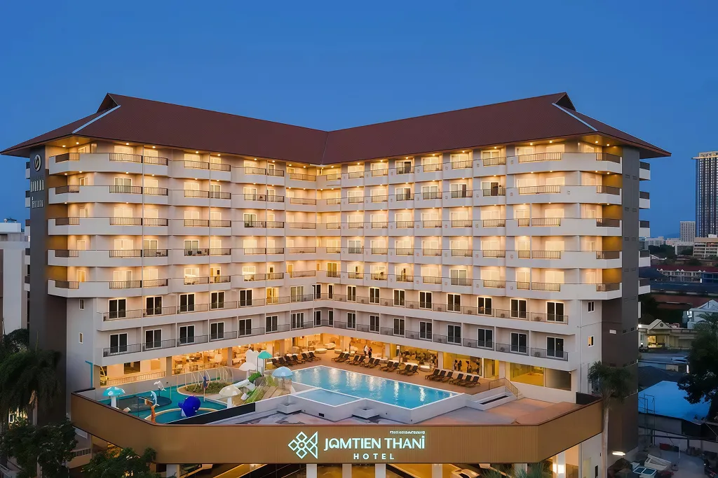 Asset positioning: Jomtien Thani Hotel is a grand 4-star luxury hospitality asset located only 300 meters from Jomtien Beach, known for its extensive facilities and high service standards.
