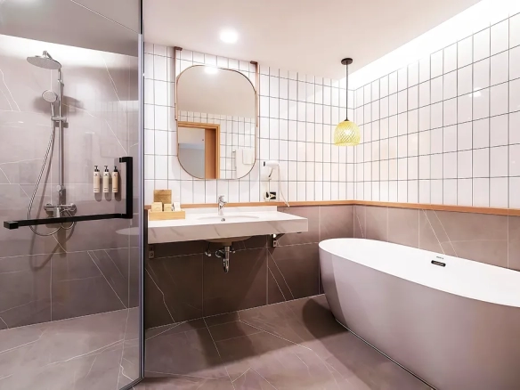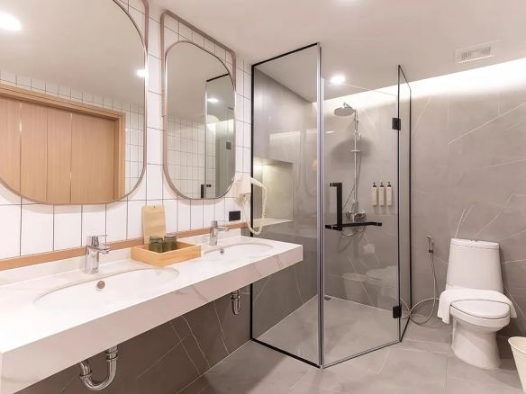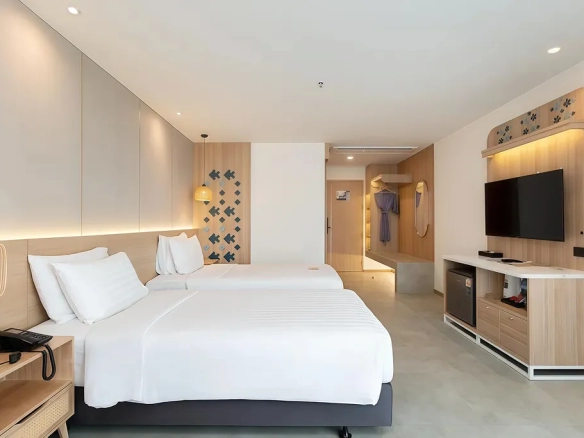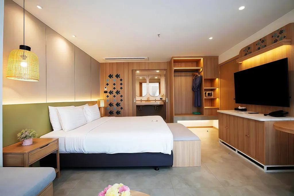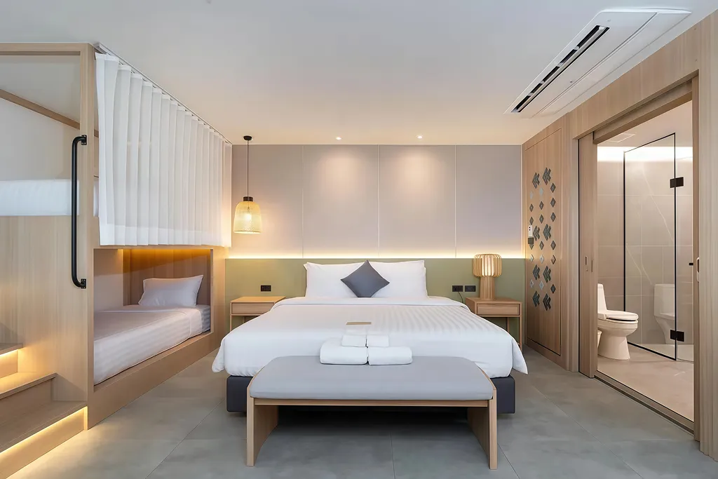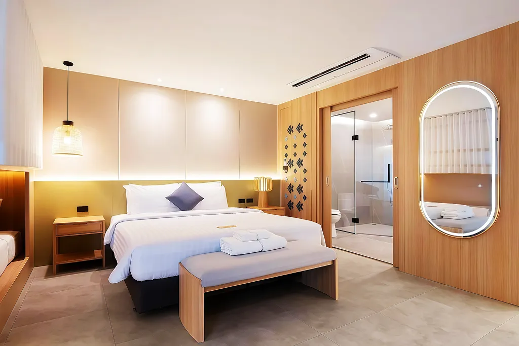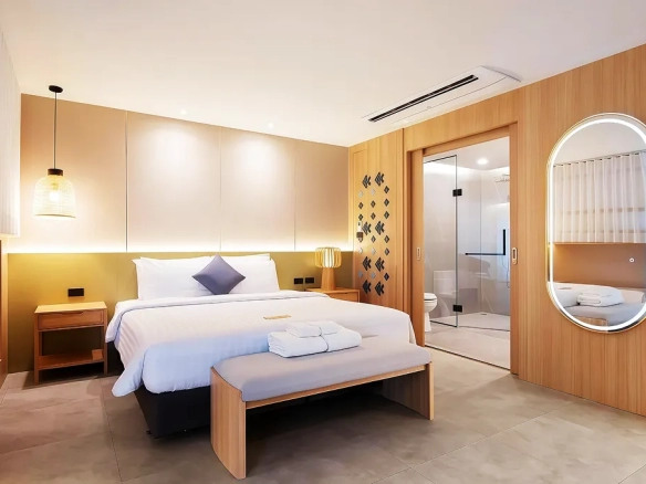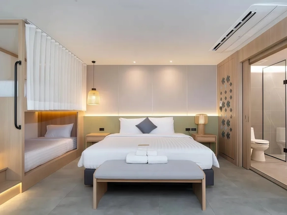 (ลักษณะห้องพัก: การออกแบบที่หรูหรา รองรับทั้งกลุ่มนักท่องเที่ยวระยะสั้นและผู้เข้าพักระยะยาว)