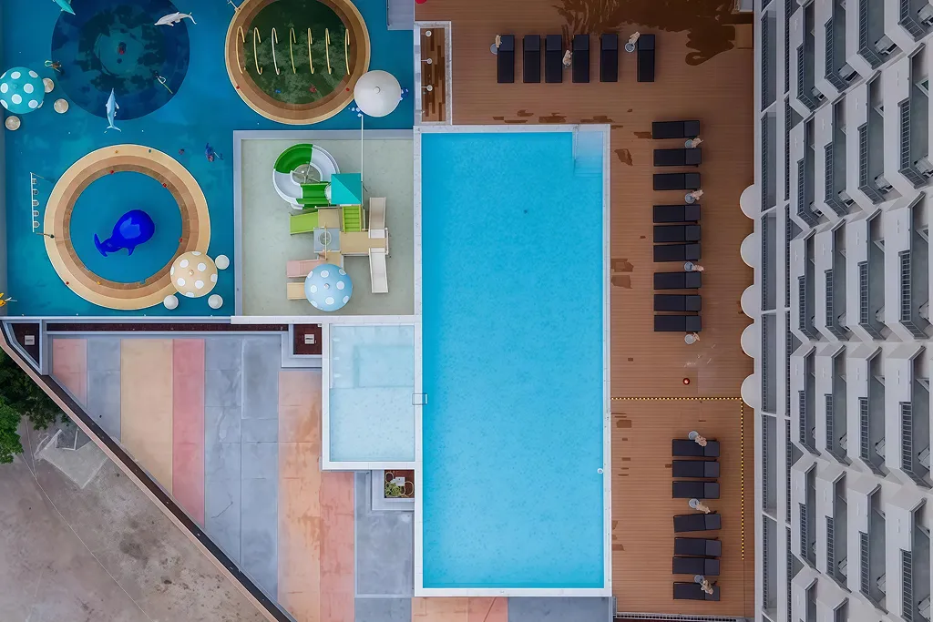 (สระว่ายน้ำ: มีทั้งสระว่ายน้ำสำหรับผู้ใหญ่และสระว่ายน้ำสำหรับเด็กโดยเฉพาะ)