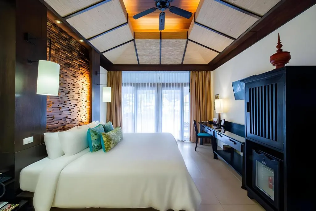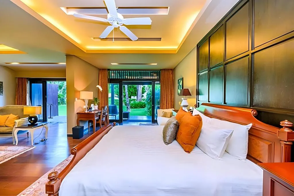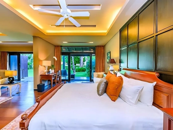 Villa-style Thai contemporary architecture with private and tranquil atmosphere, surrounded by lush gardens and the Andaman Sea.