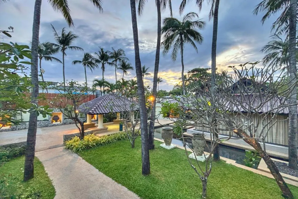 Low-rise single-storey resort buildings designed in Thai villa style.