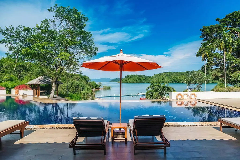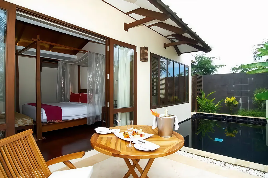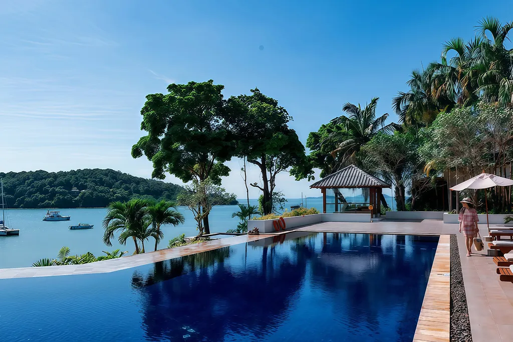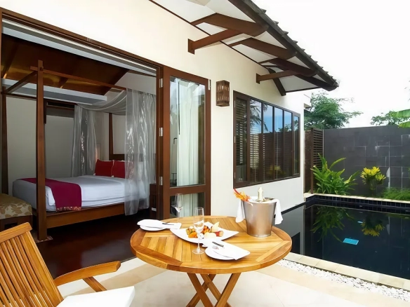 Luxury 4-star international standard resort located at Ao Por, Pa Klok, Thalang (Phuket), with private sea frontage and private beach.