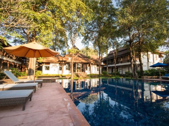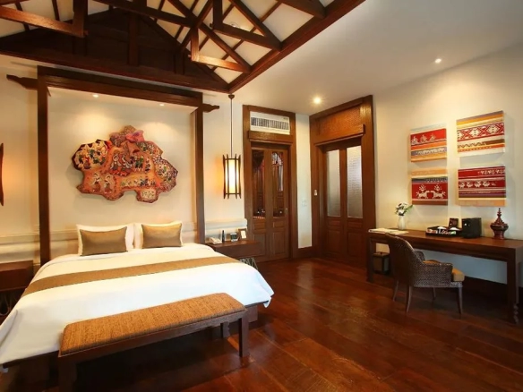 Rare luxury riverside hotel with traditional Lanna architecture.