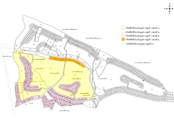 (ลักษณะทางกายภาพ: พื้นที่ประกอบด้วยภูมิทัศน์ที่กว้างขวาง มีแหล่งน้ำและพื้นที่สีเขียวตามผังสนามกอล์ฟเดิม ตามที่ปรากฏในภาพถ่ายทางอากาศและแผนผังขอบเขตที่ดิน)