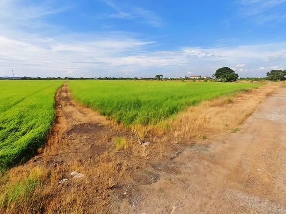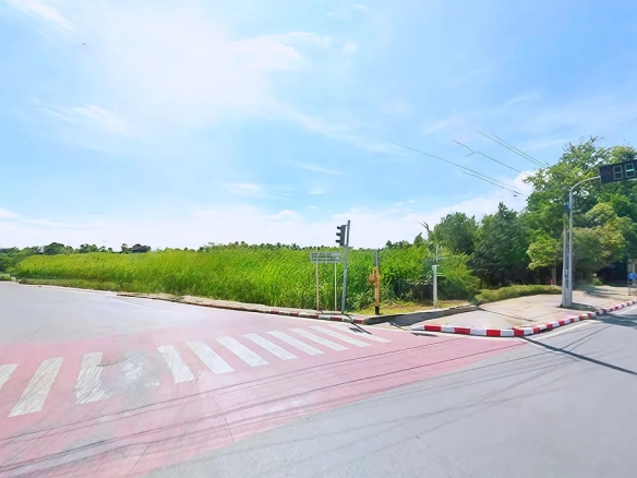 (ประเภททรัพย์สิน: ที่ดินเปล่าแปลงใหญ่พิเศษเพื่อการพัฒนาโครงการขนาดใหญ่ ตั้งอยู่บนทำเลศักยภาพติดถนนหลัก 6 เลน) - Strategic Location: Situated in Lam Pla Thio, Lat Krabang District (Bangkok), directly opposite the Lat Krabang Post Office. Strategically located only 3.5 km from Suvarnabhumi Airport.