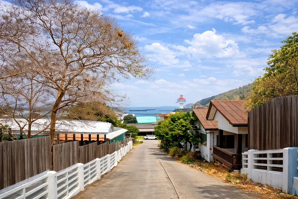 (ทำเลที่ตั้งเชิงยุทธศาสตร์: ตั้งอยู่บนเกาะสีชัง ห่างจากท่าเรือเพียง 500 เมตร มอบความสะดวกสบายสูงสุดในการเดินทางเข้าพัก)