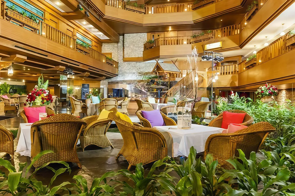 Location: Situated in a separate large building connected to the mall area, decorated with premium teak wood throughout.
