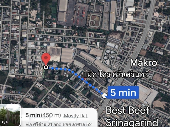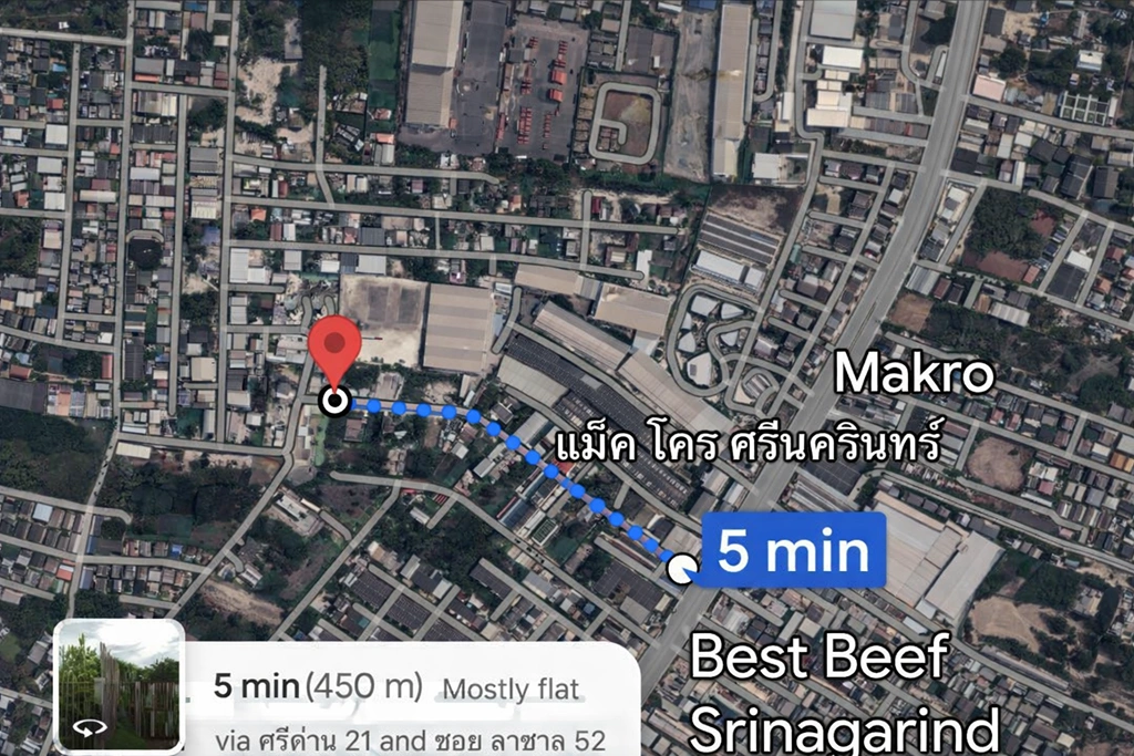 (ที่ดินทำเลศักยภาพเนื้อที่ 0.50 ไร่ (200 ตารางวา) ตั้งอยู่ในโซนที่สะดวกสบายบนถนนศรีนครินทร์ มอบความคล่องตัวในการเดินทางและเชื่อมต่อระบบขนส่งมวลชนหลัก) - Exceptional connectivity with triple access points: only 400 meters from Srinakarin Road, 550 meters from Bearing Road (Soi 39), and further linked via Lasalle Road.