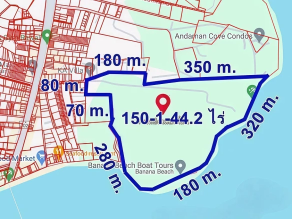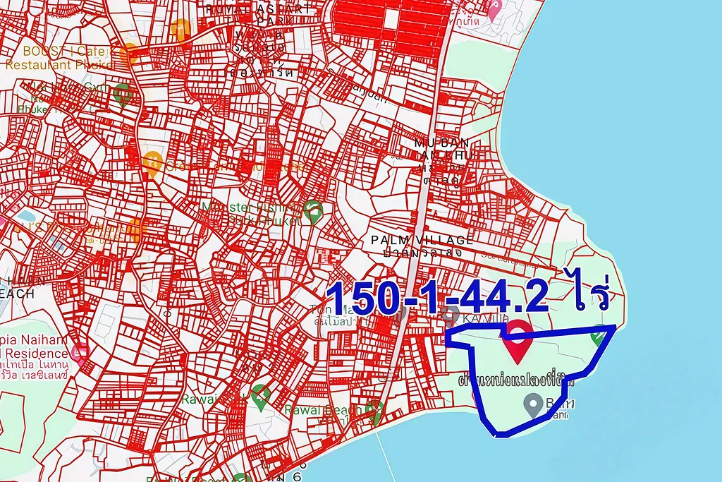 (ประเภททรัพย์สิน: ที่ดินแปลงใหญ่และสวยที่สุดบนหาดราไวย์-แหลมกาใหญ่ เป็นที่ดินพัฒนาแล้ว 100% พร้อมทะเลและหาดส่วนตัว ฟ้าสวย น้ำใส ทรายขาว บรรยากาศร่มรื่น รับโอโซน 7 จากทะเลอันดามัน พร้อมทำธุรกิจได้ทันที) - Strategic Location: Situated on Wiset Road (Route 2024), the main beachside road of Rawai. The land is located in Soi Laem Ka Yai, only 150 meters from the main Wiset Road. Excellent connectivity to Chalong Intersection, Phuket Town (20 mins), and Phuket International Airport (40 mins).