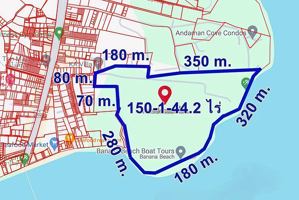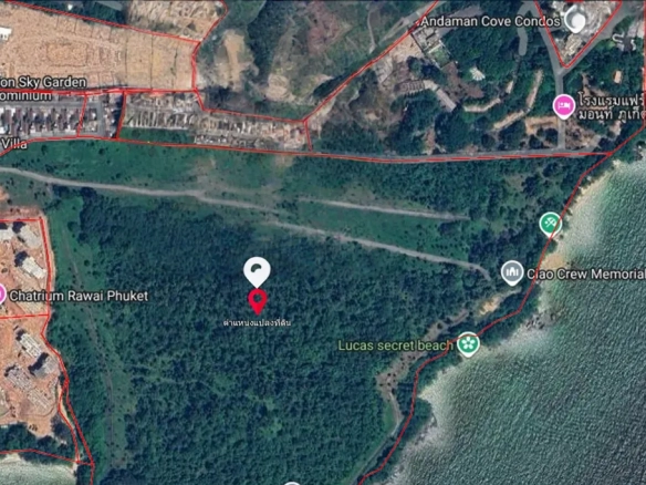 (ทำเลที่ตั้ง: ตั้งอยู่บนถนนหลวงสาย 2024 (ถนนวิเศษ) ซึ่งเป็นถนนเลียบหาดราไวย์ โดยหน้าที่ดินตั้งอยู่ในซอยแหลมกาใหญ่ ห่างจากถนนใหญ่เพียง 150 เมตร เชื่อมต่อห้าแยกฉลอง ตัวเมืองภูเก็ต (20 นาที) และสนามบินภูเก็ต (40 นาที) ได้อย่างรวดเร็ว) - Legal Status & History: Originally owned by a local family and operated as a bungalow/campsite business. Acquired by the current entity in 2013. The land has been held for over 20 years with a clear, legally verified title deed (1 Chanote) under a single private company.