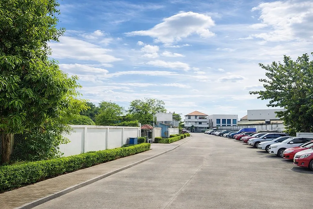 (โครงสร้างพื้นฐานถนนดีเยี่ยม: หน้าที่ดินติดถนนซอยกว้าง 14 เมตร รองรับการเดินทางและการขนส่งสำหรับโครงการก่อสร้างขนาดใหญ่ได้อย่างมีประสิทธิภาพ)