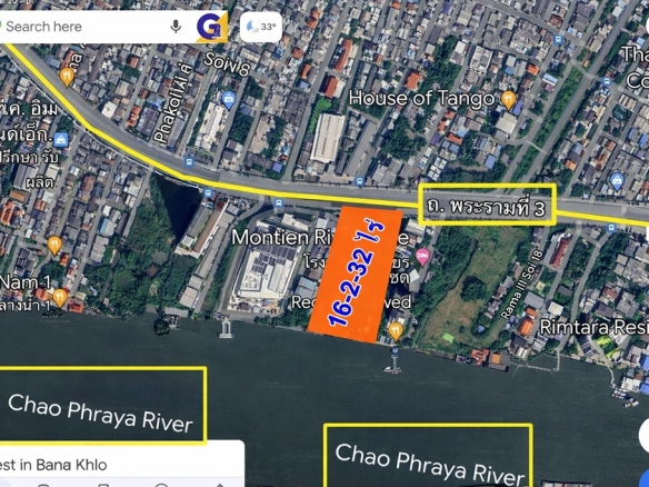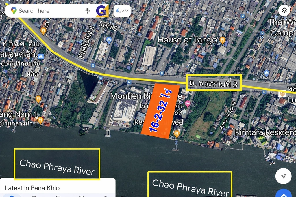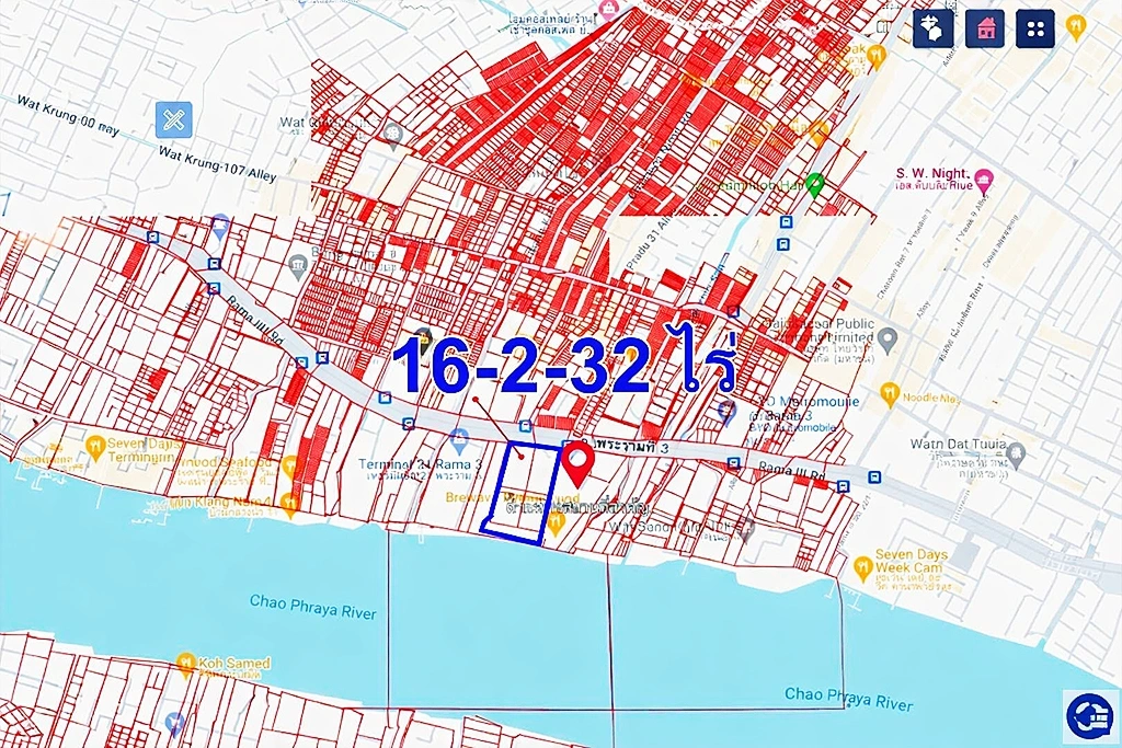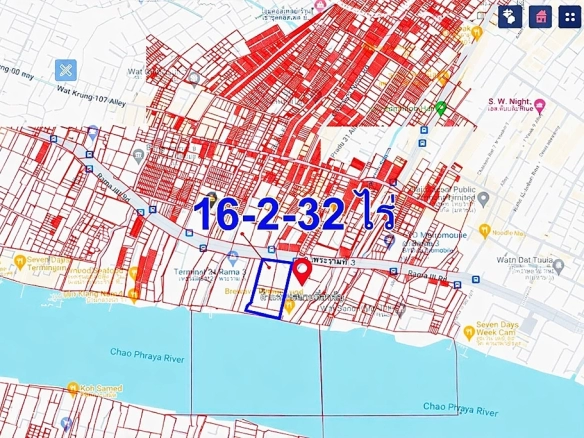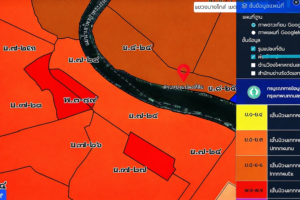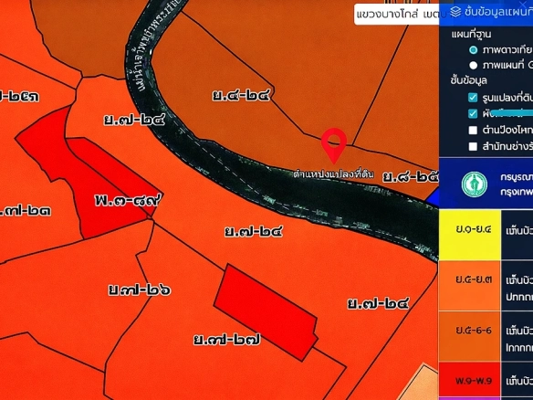 (ทำเลริมน้ำระดับเอกซ์คลูซีฟ: ที่ดินผืนใหญ่รูปสี่เหลี่ยมผืนผ้าสวยงาม ติดแม่น้ำเจ้าพระยาและติดกับโรงแรมระดับแลนด์มาร์ค) - High-Density Urban Zoning: Designated as an “Orange Zone” area, strictly allowing for the construction of high-rise buildings and large-scale commercial developments.(เขตผังเมืองสีส้มเพื่อการพัฒนาหนาแน่น: เป็นพื้นที่ที่ได้รับอนุญาตให้สร้างอาคารสูงและโครงการเชิงพาณิชย์ขนาดใหญ่ได้ตามกฎหมาย)