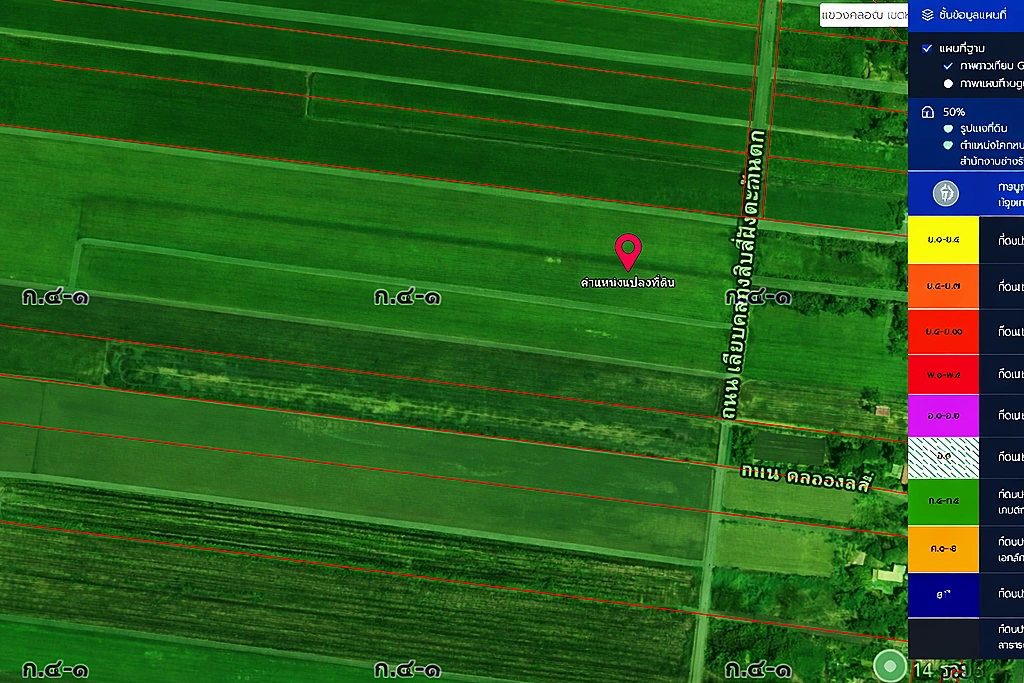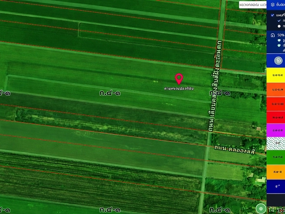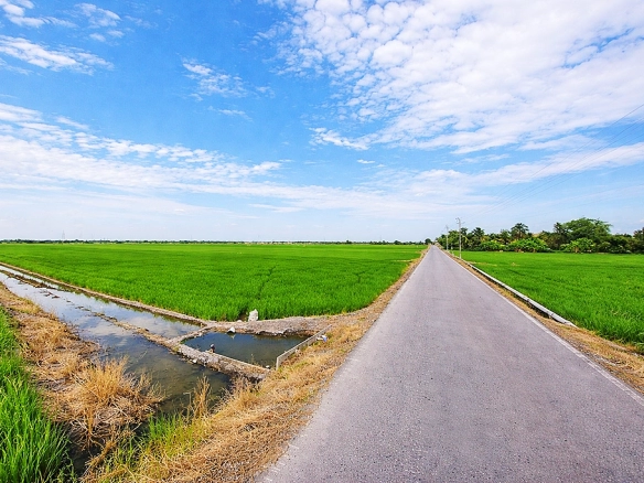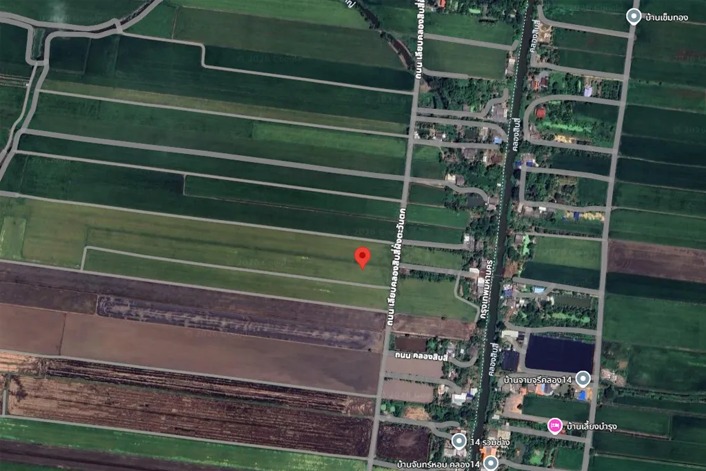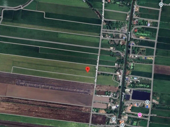 - An expansive 100.42-rai land plot strategically located along the western bank of Khlong 14, offering a vast area for agricultural, residential, or long-term investment projects.