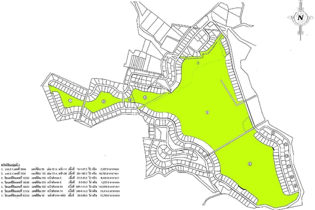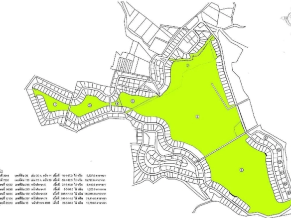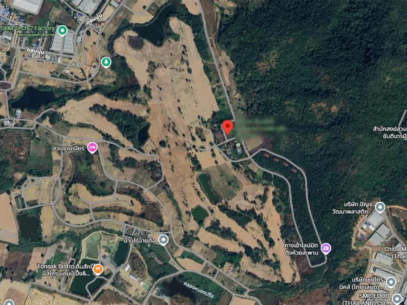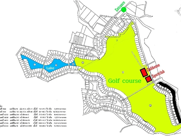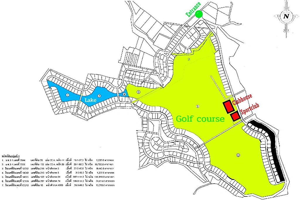 - Asset Type: An expansive land parcel and former 18-hole championship golf course, masterfully designed by the legendary Gary Player. The property is currently not in operation (closed for approximately 10 years). The site features a scenic hilly landscape, large mature trees, and three significant water reservoirs covering nearly 70 Rai. The infrastructure includes a massive clubhouse and sports club building spanning over 6 Rai, requiring complete renovation.