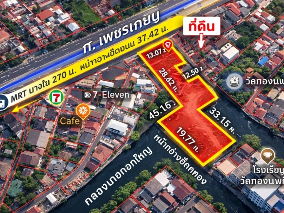 (ที่ดินทำเลศักยภาพเนื้อที่ 3.97 ไร่ (,344 ตารางเมตร) ตั้งอยู่ติดถนนเพชรเกษม โดดเด่นด้วยเอกลักษณ์ที่ผสมผสานระหว่างการติดถนนใหญ่และหน้ากว้างติดริมคลอง) - Exceptional transit connectivity, situated only 270 meters from MRT Bang Phai Station, ensuring rapid access to Bangkok’s core business districts and lifestyle hubs.