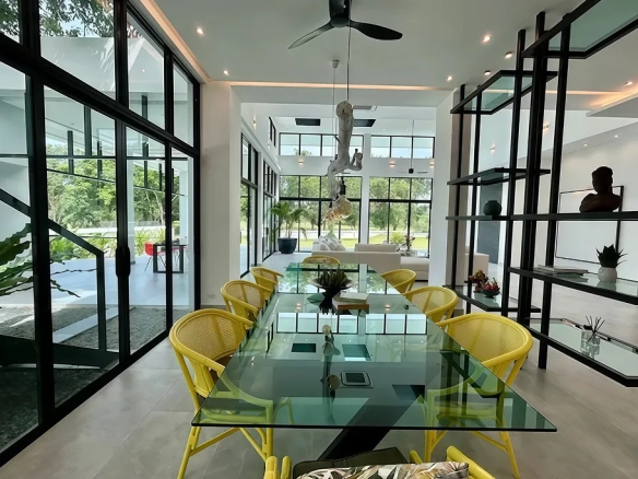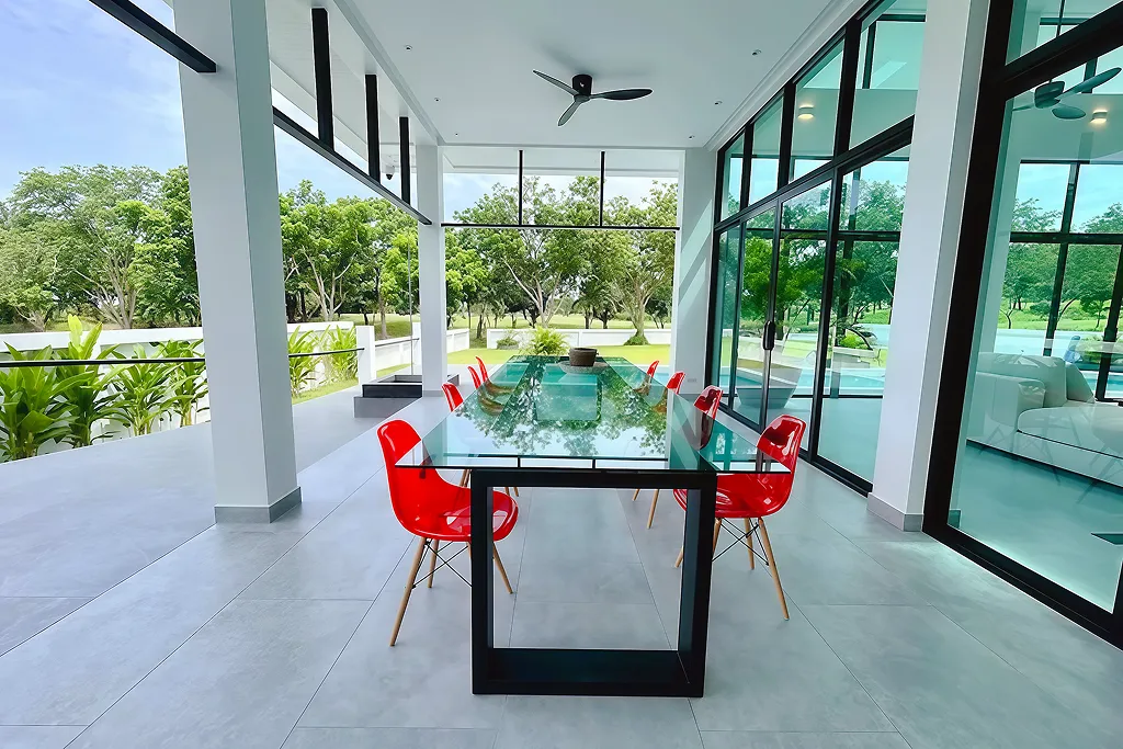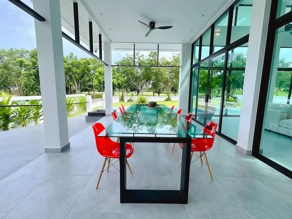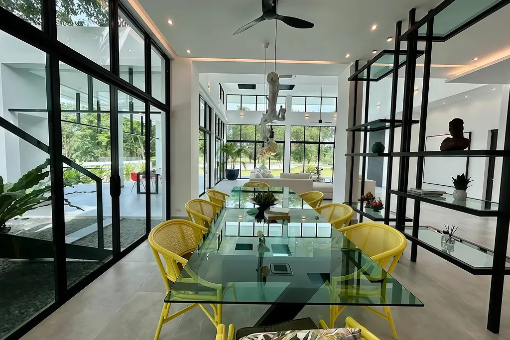- Asset Type: A prestigious 5-star international standard golf course featuring 27 holes divided into three distinct 9-hole courses: Mountain Course, Ocean Course, and Lake Course (Par 72). The estate spans over 1,205 Rai and includes a grand Thai-contemporary clubhouse (1,928,000 sq.m). The facility has a distinguished history of hosting world-class tournaments such as the King’s Cup and Ladies European Thailand Championship.